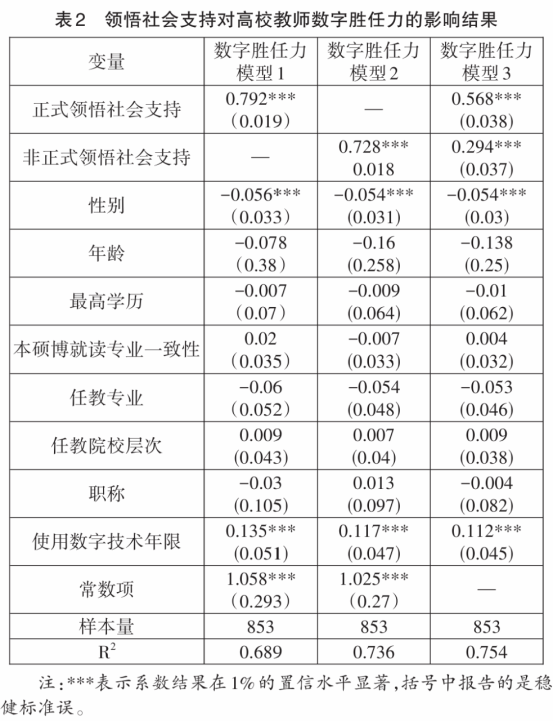 假设2:非正式领悟社会支持对高校教师数字胜任力具有显著正向影响。