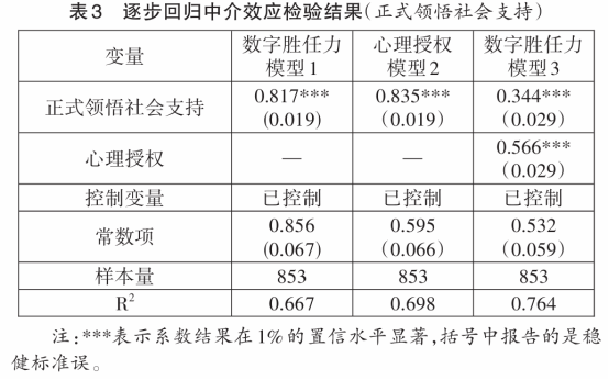 (三)心理授权在领悟社会支持与高校教师数字胜任力间是否存在中介效应